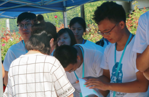 早上八点左右,已有新生陆陆续续前来报到,按照之前学生工作办公室精心设计的报到流程,新生来到体育馆外一次报到处,在几位学团志愿者的引导及帮助下,进行录取通知书核实及签到,并领取院服。在这里,新同学们得以获知分班情况,与班导生初次见面。